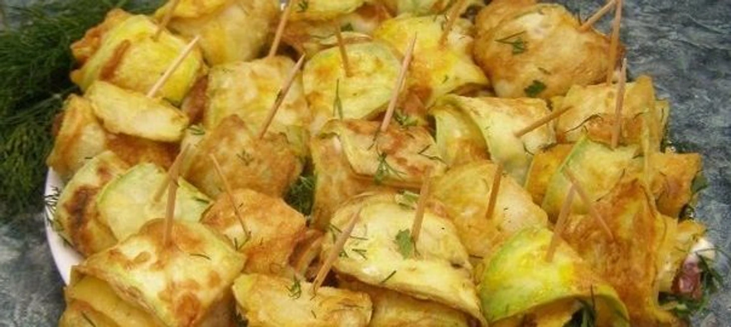 Это пикантная закуска из жареных кабачков с помидорами, сыром и чесноком. «Тещин язык» получил свое название из-за острых ноток чеснока и формы ломтиков кабачков. Это прекрасный вариант для летнего стола или праздничного застолья.