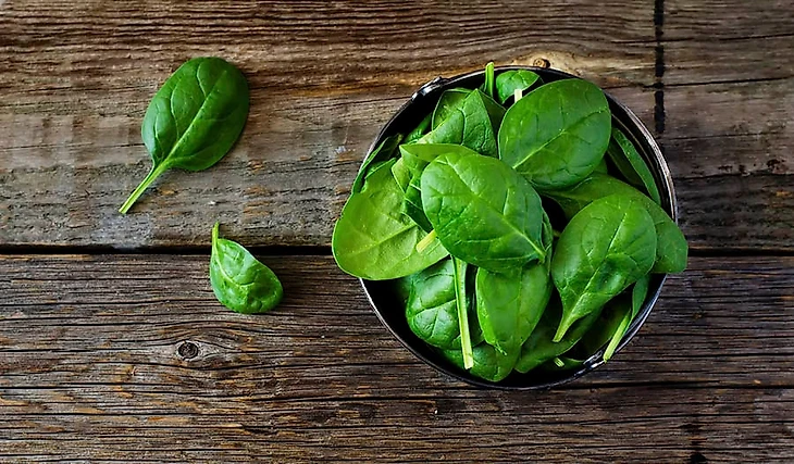 Шпинат также богат и содержит около 700 мг в 100 г. продукта.