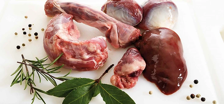 Говяжьи субпродукты, такие как почки и сердце, содержат до 7 мг пантотеновой кислоты на 100 г, являясь источником белка, железа, цинка и других минералов, способствуя укреплению иммунитета и формированию крепких костей и мышц.