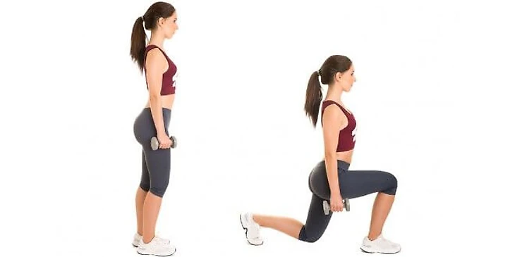 Добавление гантелей увеличивает нагрузку и способствует более интенсивной проработке мышц. Если этого недостаточно, в верхней точке выпада поднимитесь на носок передней ноги, что дополнительно задействует икроножные мышцы.