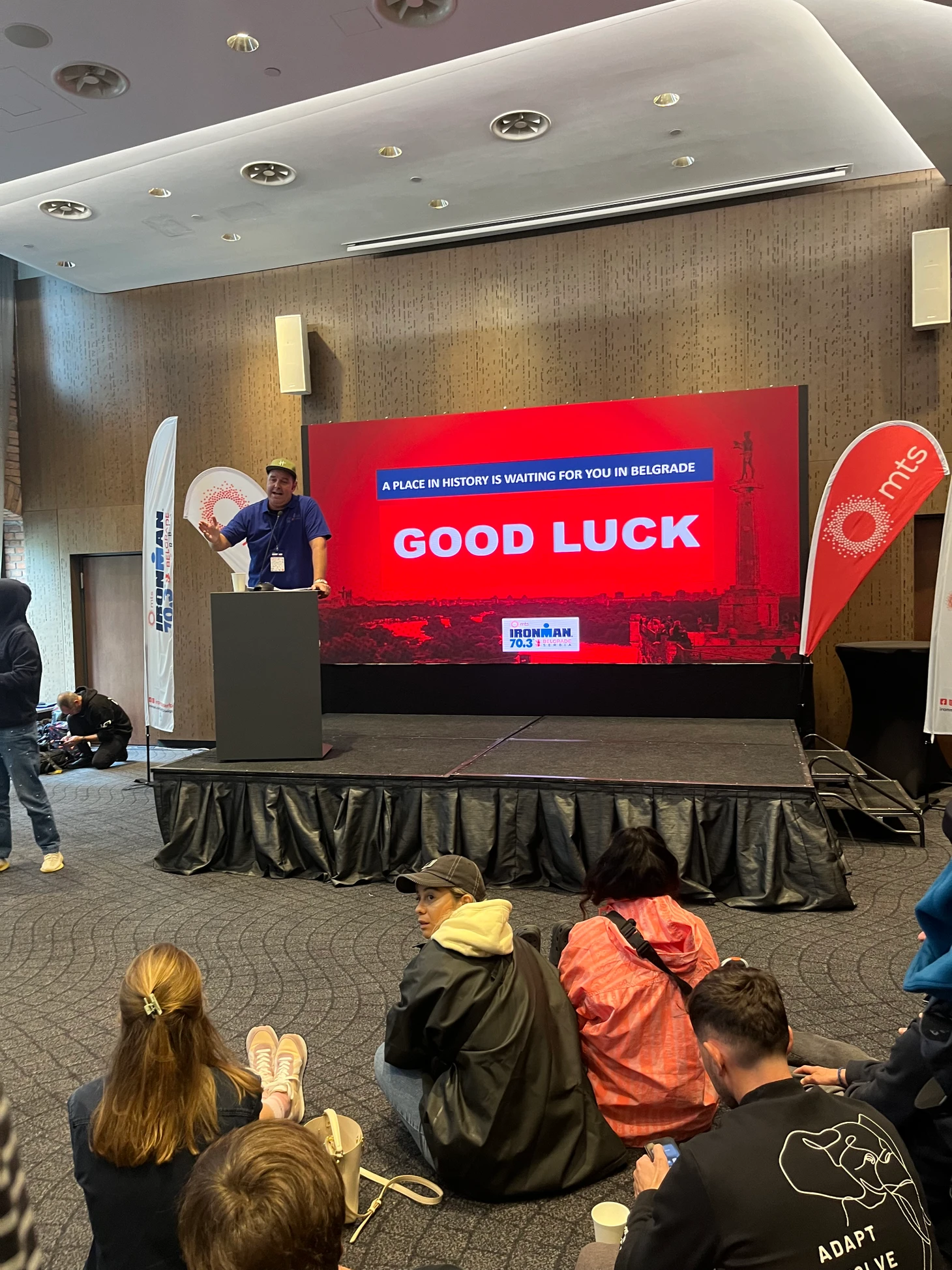 Начнем с того, что Ironman – серия соревнований по триатлону, которые проводятся в разных местах в мире. Существует 2 вида гонок Ironman: полный, он же железный (3.8 км плавание, 180 км велосипед, 42.2 км бег) и «половинка» (1.9 км плавание, 90 км велосипед, 21.1 км бег). Ее еще называют 70.3, так как это суммарное расстояние в милях, если сложить все 3 дисциплины триатлона. Половинка является более популярной, потому что она, банально, легче для прохождения, и занимает меньше времени для подготовки. Данный формат и был в Белграде.
