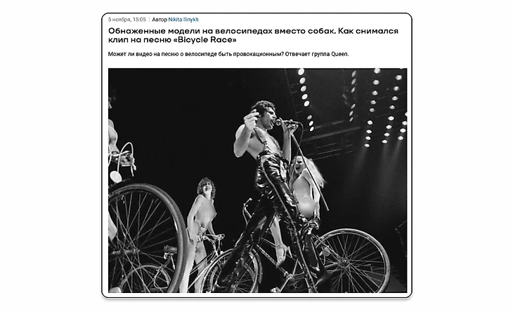 Начнем с рубрики «неочевидные сближения» — героями текста стали не только велосипеды, но и группа Queen. Да, благодаря строкам I want to ride my bicycle, герой этого текста смог разделить опыт Фредди Меркьюри. Велосипеды объединяют и…Show must go on!
