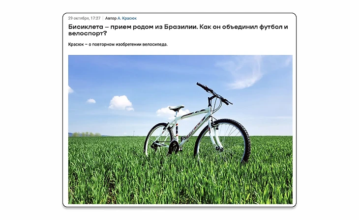 А в этом посте, автор почти изобрел велосипед, обнаружив дивную параллель. Оказалось, что двухколесный друг невидимо находится в каждом матче, в котором игроки осмелились исполнить знаменитую бисиклету.