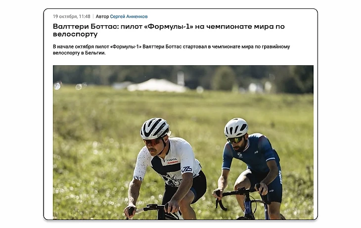 Валттери Боттас: пилот «Формулы-1» на чемпионате мира по велоспорту