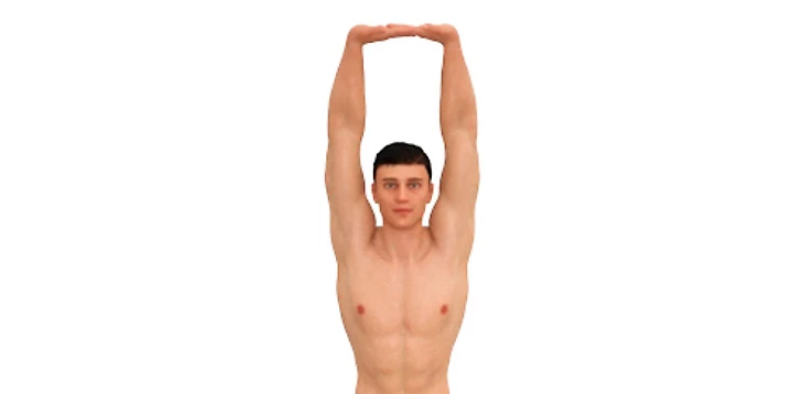 Растяжка, выполняемая с поднятыми над головой руками, способствует расслаблению мышц грудной клетки, улучшает подвижность ребер и позвоночника, а также увеличивает объем легких. Для выполнения упражнения необходимо сесть на стул со спинкой, сохраняя прямую осанку, или лечь на спину на ровную поверхность. Плечи следует опустить, а лопатки аккуратно свести вместе. Далее, сцепив руки в замок, необходимо медленно поднять их над головой, одновременно делая глубокий вдох. В верхней точке амплитуды важно почувствовать растяжение грудных мышц. Затем следует медленно выдохнуть, опуская руки в исходное положение. Рекомендуется выполнить 5 повторений с паузами в 1-2 секунды между ними.