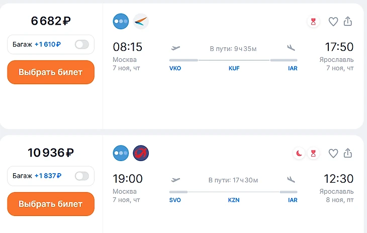 Если время в пути является критичным фактором, можно воспользоваться более быстрыми рейсами с пересадкой в других городах, например, в Казани или Сочи. Однако стоимость таких билетов значительно выше и начинается от 13000 рублей. При выборе рейса с пересадкой следует обратить внимание на длительность стыковки, а также на аэропорт пересадки. Помимо «Smartavia» и «Азимут», рейсы с пересадкой до Ярославля на самолете выполняют и другие авиакомпании: «Аэрофлот», S7 Airlines, Ural Airlines.