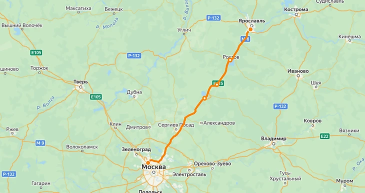 Основной магистралью, связывающей Москву и Ярославль, является федеральная трасса М8 «Холмогоры», в просторечии именуемая «Ярославкой». Она берет свое начало в Москве и проходит через Московскую, Владимирскую и Ярославскую области. Трасса отличается хорошим качеством дорожного покрытия и развитой инфраструктурой: на ней расположены многочисленные автозаправочные станции, кафе, мотели и пункты отдыха. Трасса М8 «Холмогоры» является платной на некоторых участках. Стоимость проезда зависит от категории транспортного средства и протяженности платного участка. Оплатить проезд можно наличными или банковской картой в пунктах взимания платы.