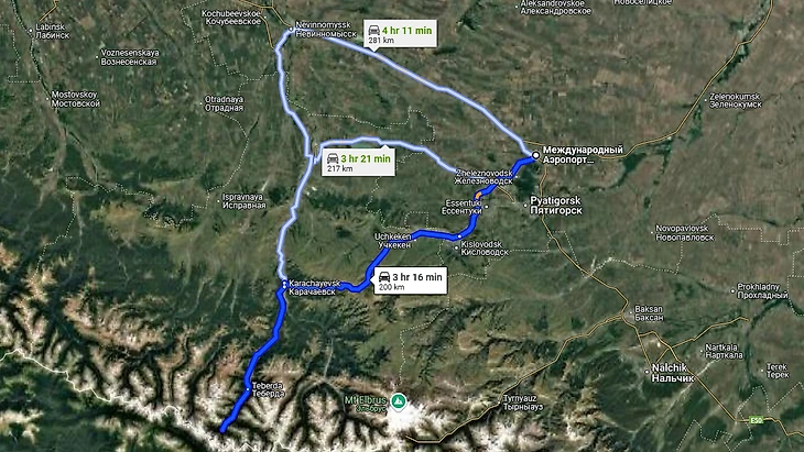 До ближайших аэропортов (это Ставрополь и Минеральные Воды) от Домбая примерно 200-250 километров. Расстояние неблизкое, из-за чего многие туристы и считают Домбай далеко не самым удобным местом для горнолыжного отдыха. Однако добраться до места назначения все еще можно, тем более, что местные стараются всячески эту миссию упростить.