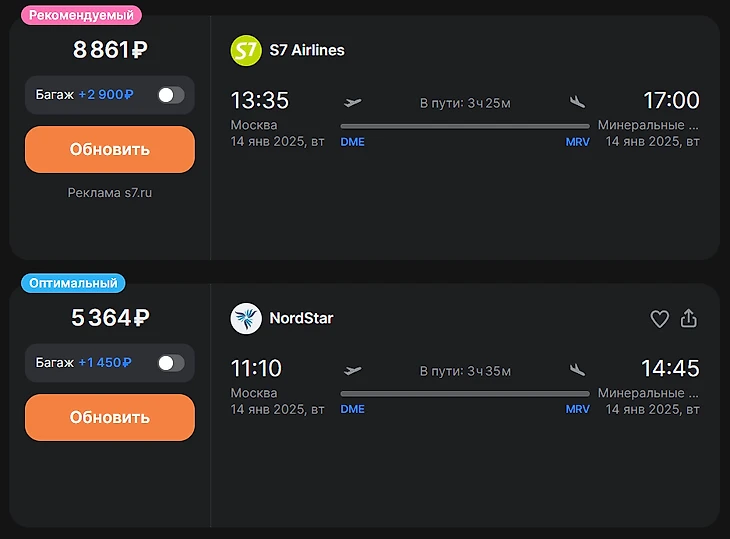 Вылет состоится из одного из московских аэропортов: рейсы до Минеральных Вод ежедневно отправляются и из Домодедово, и из Шереметьево, и из Внуково. Полет, с учетом обхода действующих бесполетных зон, занимает около трех с половиной часов. Рейсы выполняются практически всеми российскими авиакомпаниями: S7, NordStar, Аэрофлот и другими. Стоимость билетов – от 5 000 до 10 000 рублей.