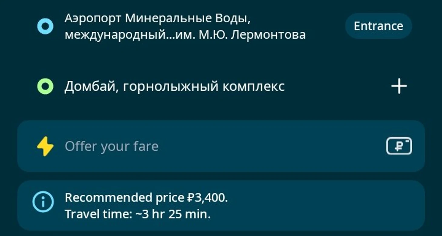После приземления в Минеральных Водах вам предстоит следующий этап пути – несколько часов до самого Домбая. Если вещей у вас не очень много, то можно воспользоваться услугами такси или рейсовых автобусов. А вот тем лыжникам, кто везет с собой несколько десятков килограмм спортивного инвентаря, рекомендуется заказывать сразу шаттл: небольшой микроавтобус, в который влезет вся поклажа. Стоимость такого шаттла разнится и зависит от перевозчика, однако в среднем составляет около 5 000-6 000 рублей.