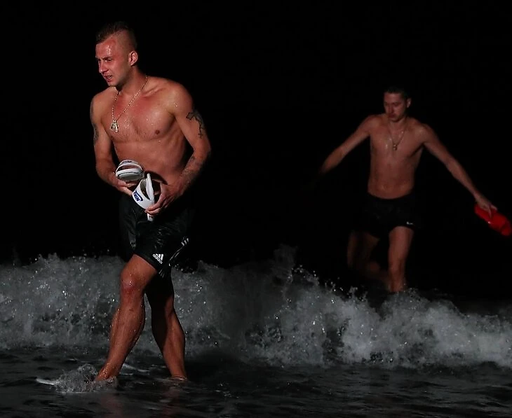 Футболисты «Локомотива» на Крещение тоже купались, правда делали это не так экстремально: погружались не в прорубь с ледяной водой, а в море.