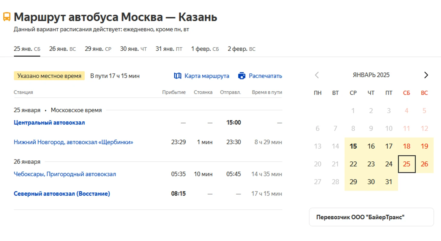 Время отправления и прибытия может меняться. Рекомендуем посетить сайт «Центрального автовокзала», так как некоторые маршруты не доступны на понедельник и вторник. При покупке билета на сайте автовокзала вам надо сохранить электронную копию или распечатать посадочный талон. По номеру +7 (499) 748 80 29 можно позвонить в справочное бюро автовокзала.