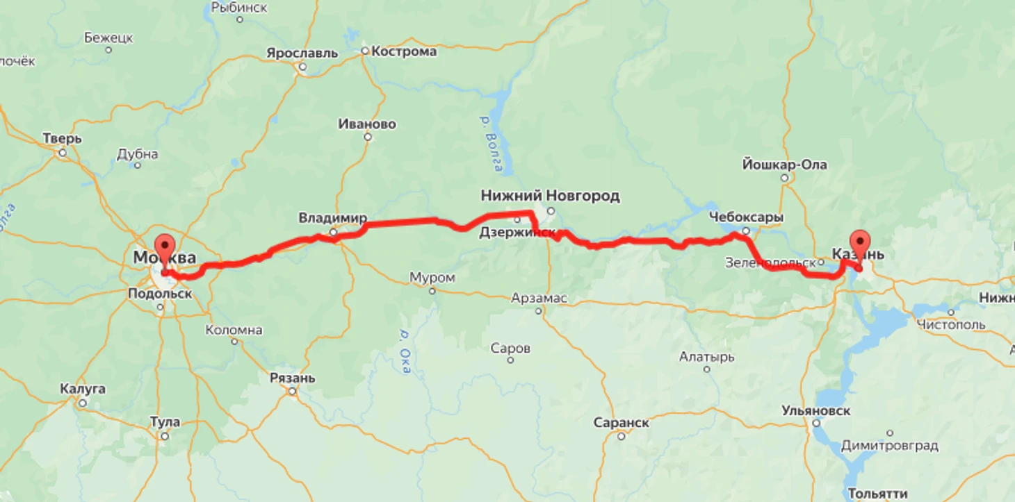 В зависимости от выбранного маршрута, расстояние от Москвы до Казани по автомобильным дорогам составляет около 830 километров.