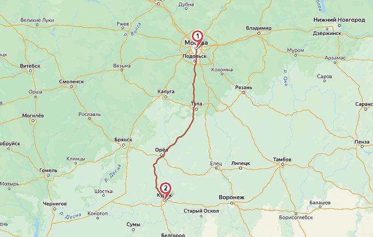 Маршрут поездки в Курск из Москвы только один, он может немного меняться от первоначально выстроенного навигатором, если следовать через некоторые населенные пункты объездной дорогой. Дорога будет проходить через такие города, как Подольск, Тула и Орел.