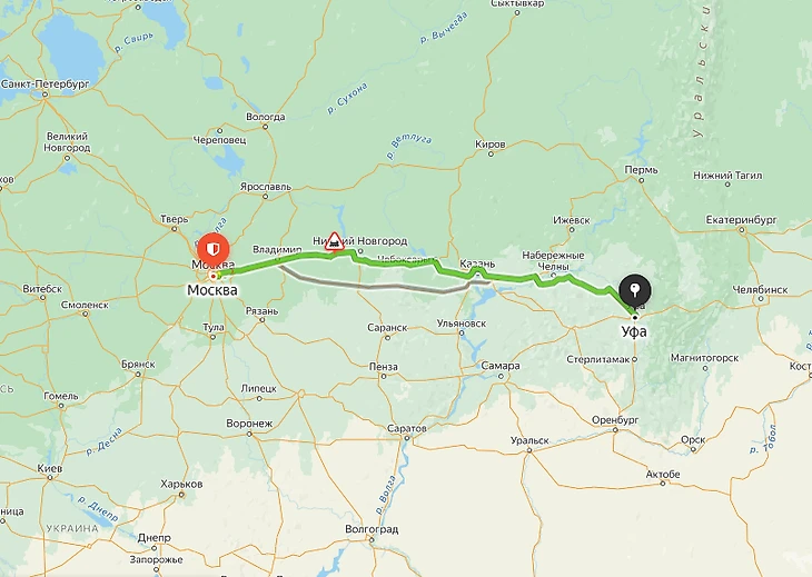 Расстояние от Москвы до Уфы по кратчайшему пути на автомобильной трассе составляет около 1330 км, но можно поехать и альтернативной трассе, составляющей около 1470 км. Обратите внимание, что выезжая из Москвы часто бывают на дорогах заторы, поэтому отправляться в путь лучше ночью или ранним утром.