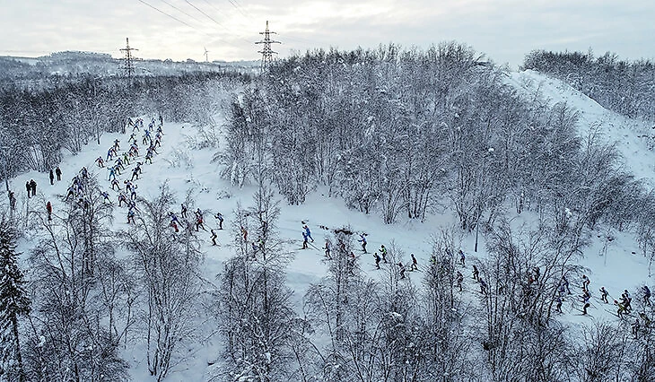 Вот «Лыжня» в заснеженном лесу в Кемерово: