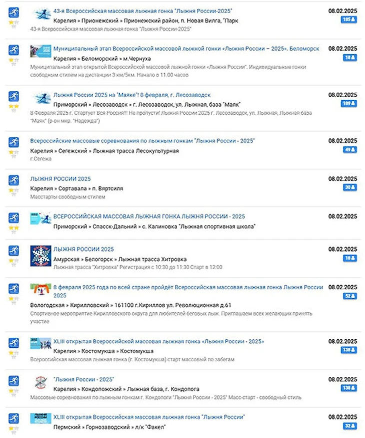 Кстати, сайт лыжняроссии.рф, где, казалось бы, должна быть информация по всем регионам, принадлежит Петербургу. Но даже его не обновили к 2025 году.