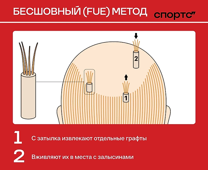 При FUE-пересадке графты пересаживают поштучно. Этот метод более трудоемкий, но не оставляет рубцов. Кроме того, он менее болезненный, а восстановление после него проходит легче, поэтому его используют чаще.