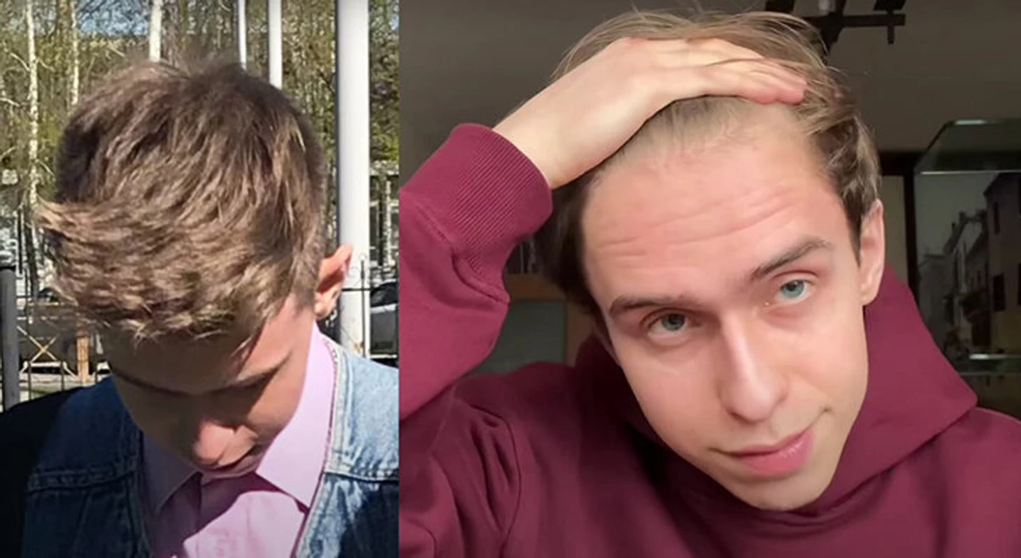 После 19 лет по непонятным причинам густые волосы Степана стали редеть: сначала появились небольшие залысины у висков, линия роста стала сдвигаться к макушке, вдоль пробора волосы становились все тоньше, а на затылке разрасталось «озеро».