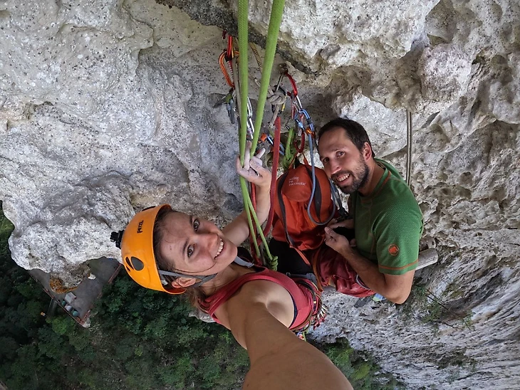В этой поездке я впервые попробовала сложные мультипитчи (мультики). Для меня это оказалось не просто лазанием, а настоящим вызовом. С каждым пройденным питчем желание срываться становится все меньше — ведь каждый срыв означал возвращение к началу питча, а на навесе данный процесс довольно утомителен.