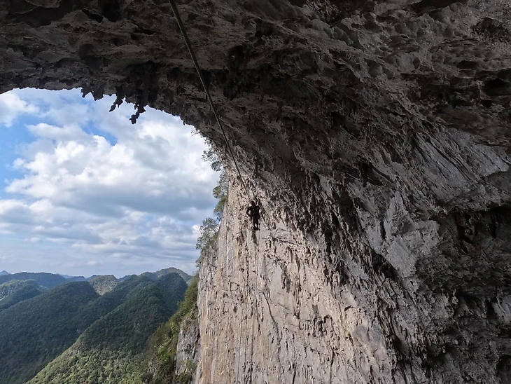 Гету – это большая арка. Тут есть обычная трудность по стенам и длинные мультипитчи, уходящие на потолок на 4-9 веревок. Было видно, что сложные маршруты тут давно никто не лазал. Скалы покрыты пылью, зацепки грязные, как будто давно забытые. В некоторых местах приходилось буквально выдувать пыль.
