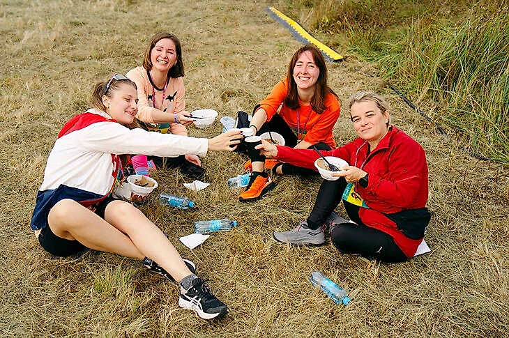 Кристина Журавлева: «После финиша здесь раздают гречку, есть настил из сена, где можно организовать пикник. Мы всегда берем плед – можно поесть и отдохнуть после старта. В 2024 году забег совпал с Пасхой, поэтому мы с собой даже взяли куличи, приехали на забег с друзьями и отметили праздник в компании.