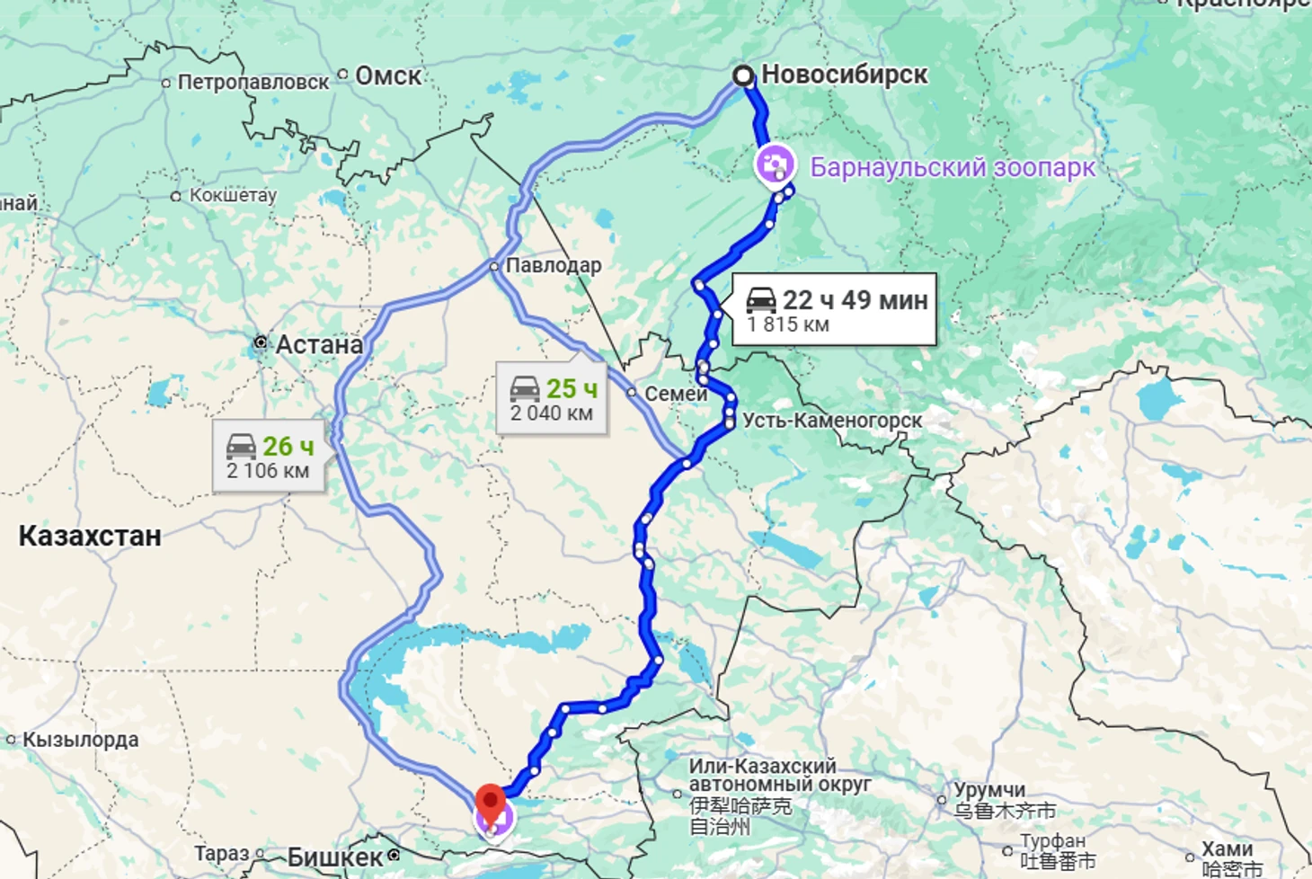 Если ехать в Казахстан на машине из Дальнего Востока или Сибири, то маршрут в Алматы будет пролегать через Новосибирск. Далее можно воспользоваться несколькими направлениями. Одно западнее через Астану, огибая озеро Балхаш с запада другое восточное через Семей и Усть-Каменогорск.