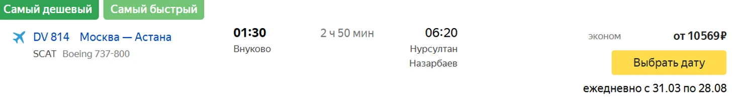 Новосибирск – Астана ежедневно от 6 661 рубля;