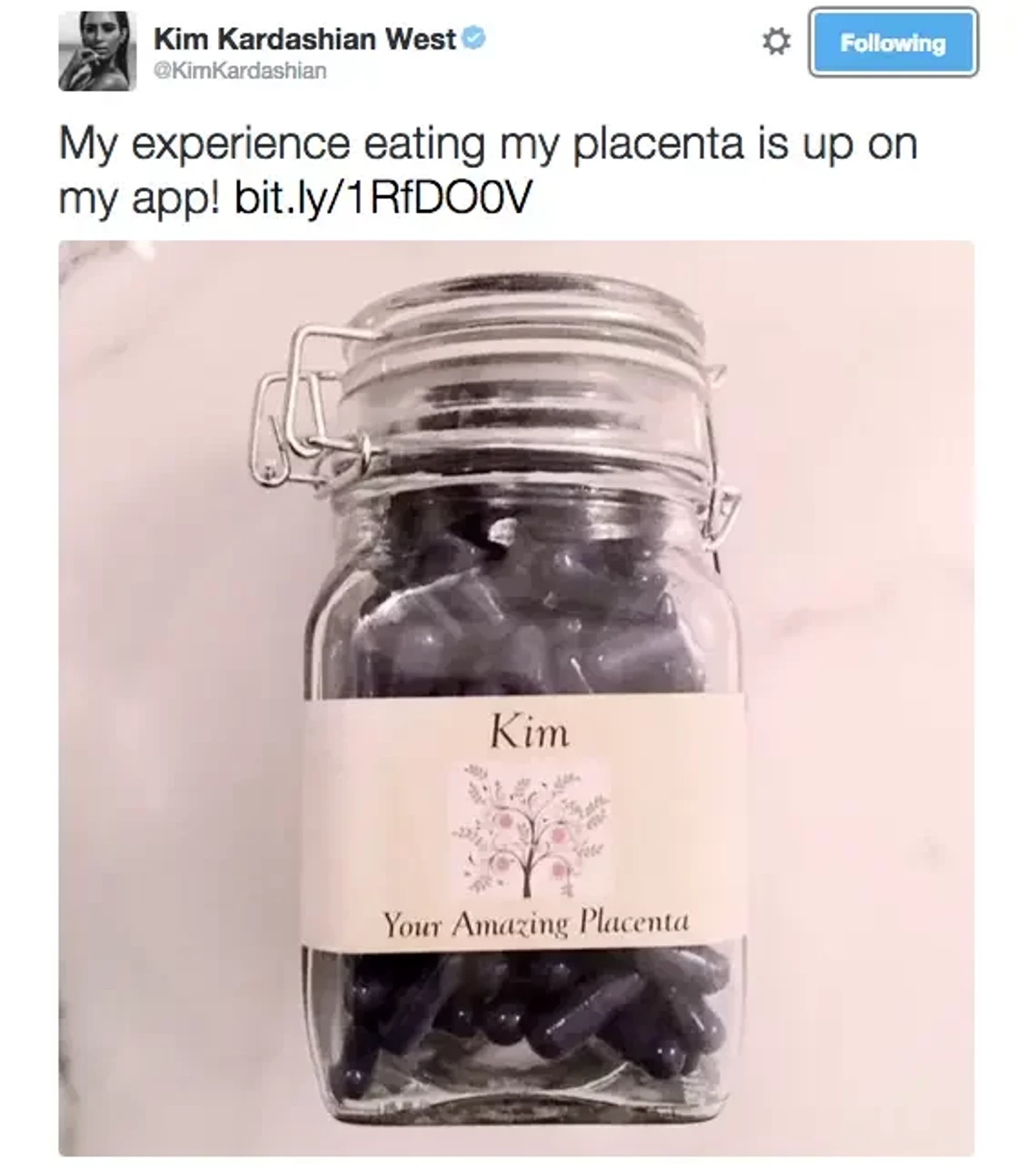 Плацентарные практики стали особенно популярны после постов звезд вроде Ким Кардашьян. Так, Ким активно рассказывала в соцсетях, как после родов принимала капсулы со своей плацентой. По ее словам, это помогло избежать депрессии и восстановиться быстрее.