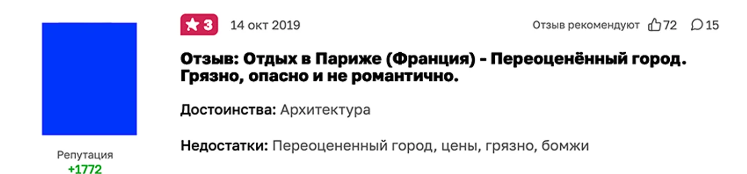 На форумах можно найти сотни постов, посвященным личным историям разочарования от Парижа – от культурных различий, связанных с повсеместным курением и холодностью парижан, до крыс и разбросанного мусора.