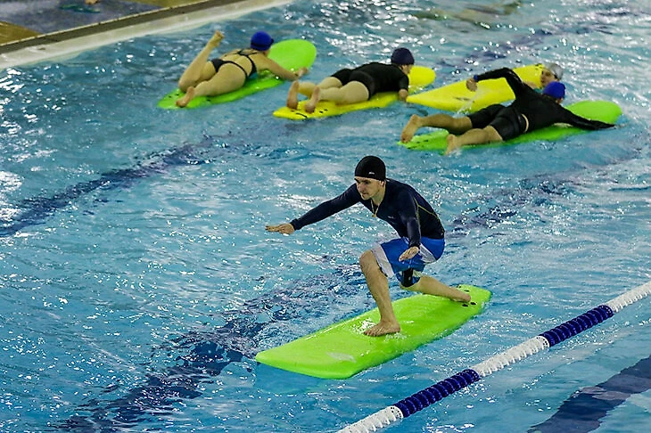 Евгений Исаков: «Ночной кошмар серфера – это гребля к волне, по сути плавание, его очень много. Поэтому если планируете заниматься серфингом, стоит подумать о занятиях в бассейне. Можно тренироваться прямо на доске – в нашей школе серфинга мы часто проводим такие тренировки».