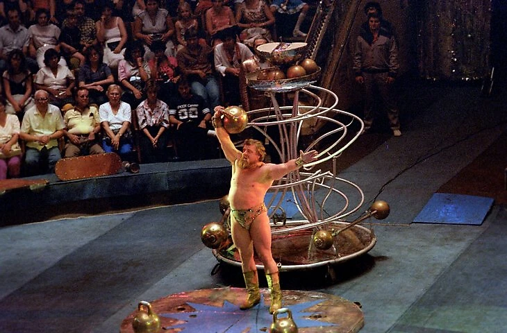 Во время выступлений стоял на одной руке, подбрасывал тяжеленные гири, жонглировал пушечными ядрами, поднимал девушек, сидящих на велосипедах, и даже платформу с автомобилем.