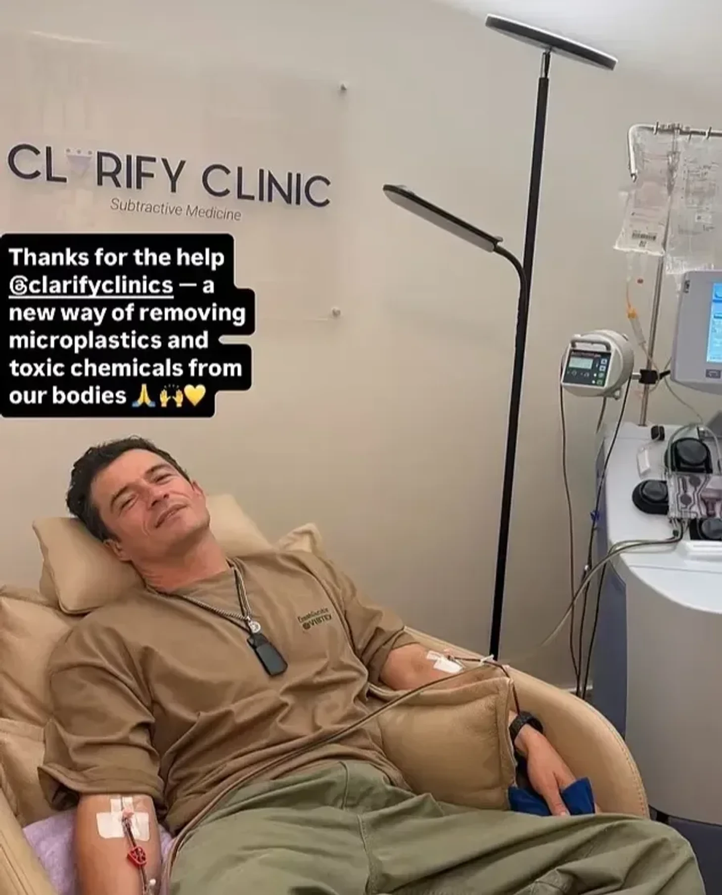 В соцсетях голливудский актер Орландо Блум поделился фото, сделанным во время процедуры очищения крови в Clarify Clinics в Лондоне. Он выглядел довольно расслабленным, пока из него «выкачали всю кровь, профильтровали в специальном аппарате и вернули в вену».