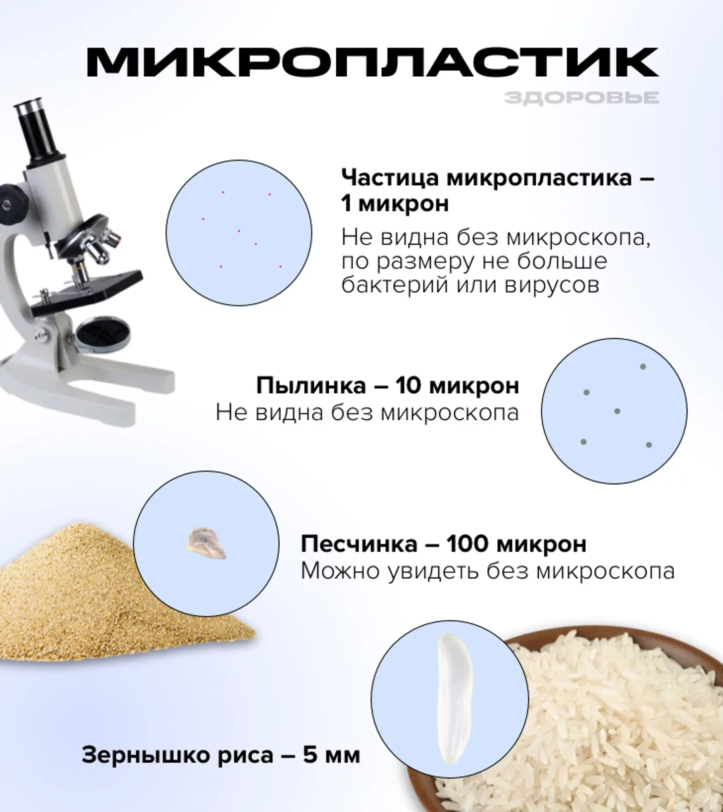 Микропластиком называют крошечные частицы пластиковых материалов диаметром от 1 микрона до 5 мм, которые попадают в окружающую среду из разложившихся отходов: остатков упаковки, одноразовой посуды, бутылок, одежды, косметики.