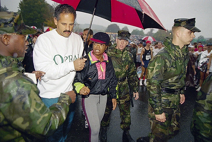 Бегущая Опра Уинфри стала национальным символом дисциплины и целеустремленности. Чтобы поучаствовать в марафоне, ей пришлось сбросить более 30 кг и усиленно тренироваться, несмотря на плотный график звезды дневного телевидения.