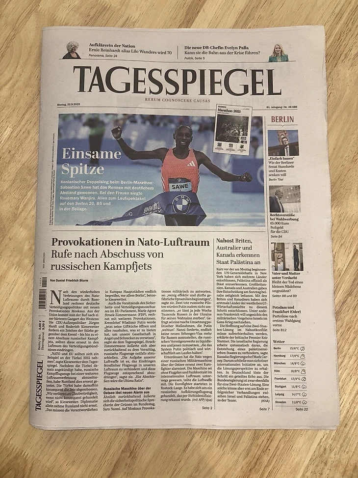 После марафона по городу все ходят в медалях. Заходишь в кафе – поздравляют, делают скидки, могут угостить бесплатным кофе. На следующий день после забега выходит газета «Шпигель», в которой указаны имена и время всех финишеров. Я себе такую купила на память».