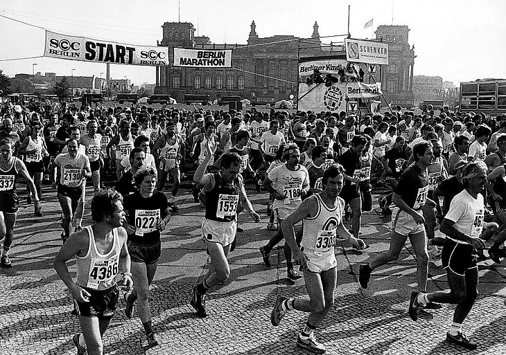 В сентябре 1981 года атлеты впервые пробежали марафон по главным улицам Западного Берлина. Этот забег стартовал на лугу перед зданием Рейхстага, а заканчивался у Мемориальной церкви кайзера Вильгельма. В забеге приняло участие 3200 человек, что на тот момент было рекордным количеством участников для Германии. С тех пор стартовый городок забега всегда располагается у Рейхстага.