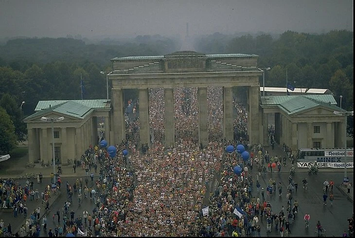 17-й Берлинский марафон 30 сентября 1990 года стал историческим: жители ФРГ и ГДР впервые официально пробежали этот забег вместе, на старт вышли 25 000 бегунов из разных стран. Тогда маршрут стал проходить через Бранденбургские ворота – как символ соединения Востока и Запада.
