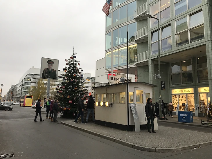 Еще одно знаковое место – чекпойнт Чарли. Это КПП на границе ГДР и ФРГ. Там все оставлено в таком же виде, как до разрушения стены: здание КПП, плакаты, указатели.