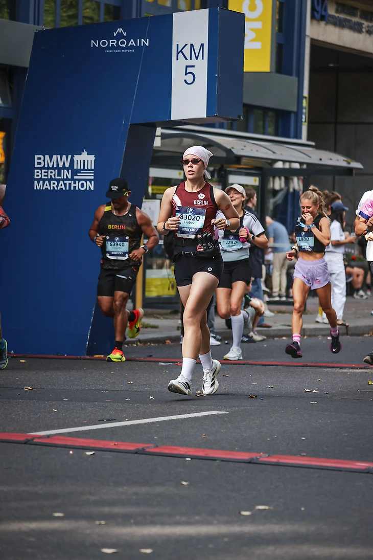 Юля Пухкал, участница марафона в 2022 году: «Последний километр марафона проходит по бульвару Унтер-ден-Линден, в самом конце которого – Бранденбургские ворота. За несколько километров до поворота на бульвар я столкнулась с марафонской стеной. Это состояние усталости, когда ноги перестают слушаться, темп падает и ты никак не можешь его увеличить.