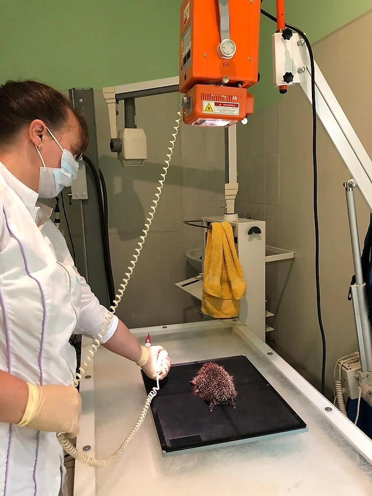 Сделали ей операцию Остеосинтез, на спице собрали кость. 2-2,5 недели она будет здесь в клинике под наблюдением, потом мы делаем повторный снимок. После этого вынимаем спицы, и она будет расхаживать лапу, тренировать мышцы. Сначала будет делать это в маленькой палатке(размер большой клетки), потом она перейдет в бокс побольше(размер маленькой комнаты), еще восстановится, мы будем следить за ее состоянием. Дальше мы перевезем ее в загородные вольеры большие, где она начнет летать, восстанавливать окончательно мышечную силу. Затем выпускаем на Ладоге в природу.