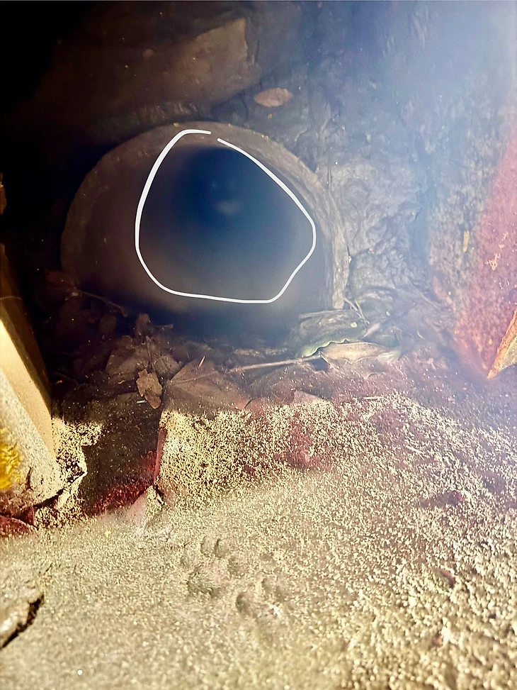 Я заглянул в трубу и буквально нос к носику столкнулся с черно-белой пушистой мордашкой с голубыми глазами. Мордашка зашипела и стала пятиться.