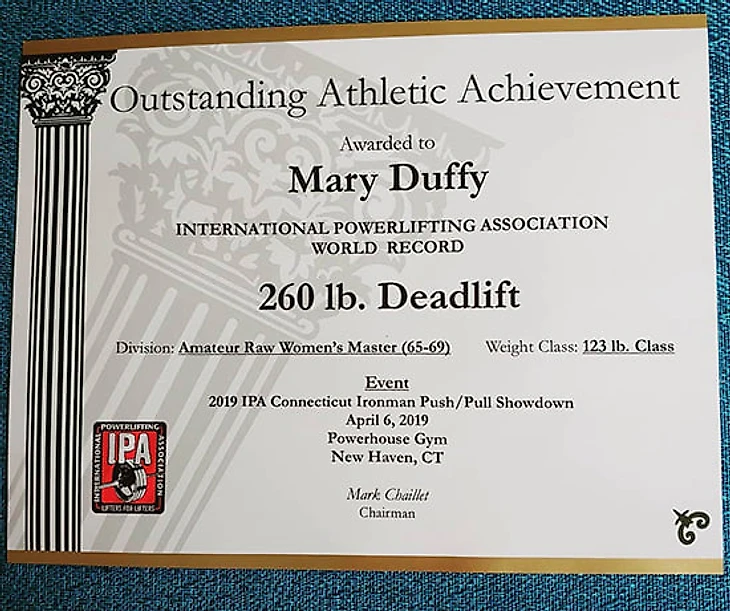 Американка Мэри Даффи чертовки убедительно смотрится со штангой. Ей 69 и в начале мая она попала в Зал славы пауэрлифтинга Коннектикута.