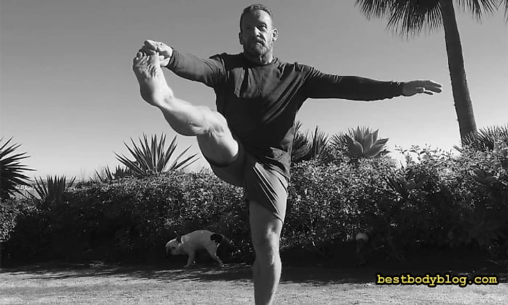 Как он сам говорит: йога помогает мне вернуть гибкость и подвижность моих суставов, измочаленных годами тяжелейших тренировок с запредельными весами.