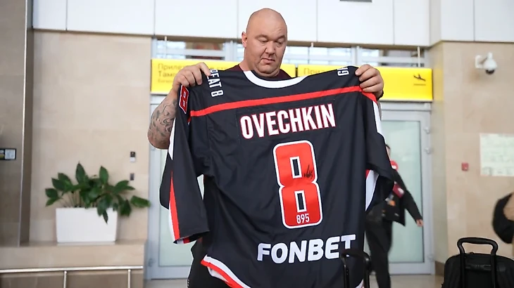 После угощения Хафтору предложили джерси Александра Овечкина, нового рекордсмена НХЛ. Стронгмен пытался надеть форму, но та оказалась маловата, поэтому он просто сфотографировался с ней.