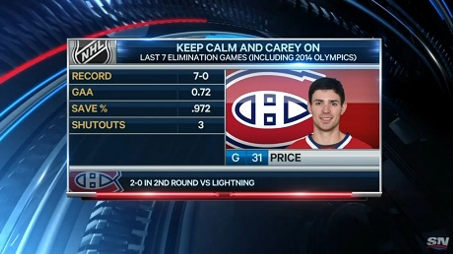 В предыдущих семи победных решающих матчах Прайс пропускал в среднем 0,72 гола и отражал 97,2 процента бросков.