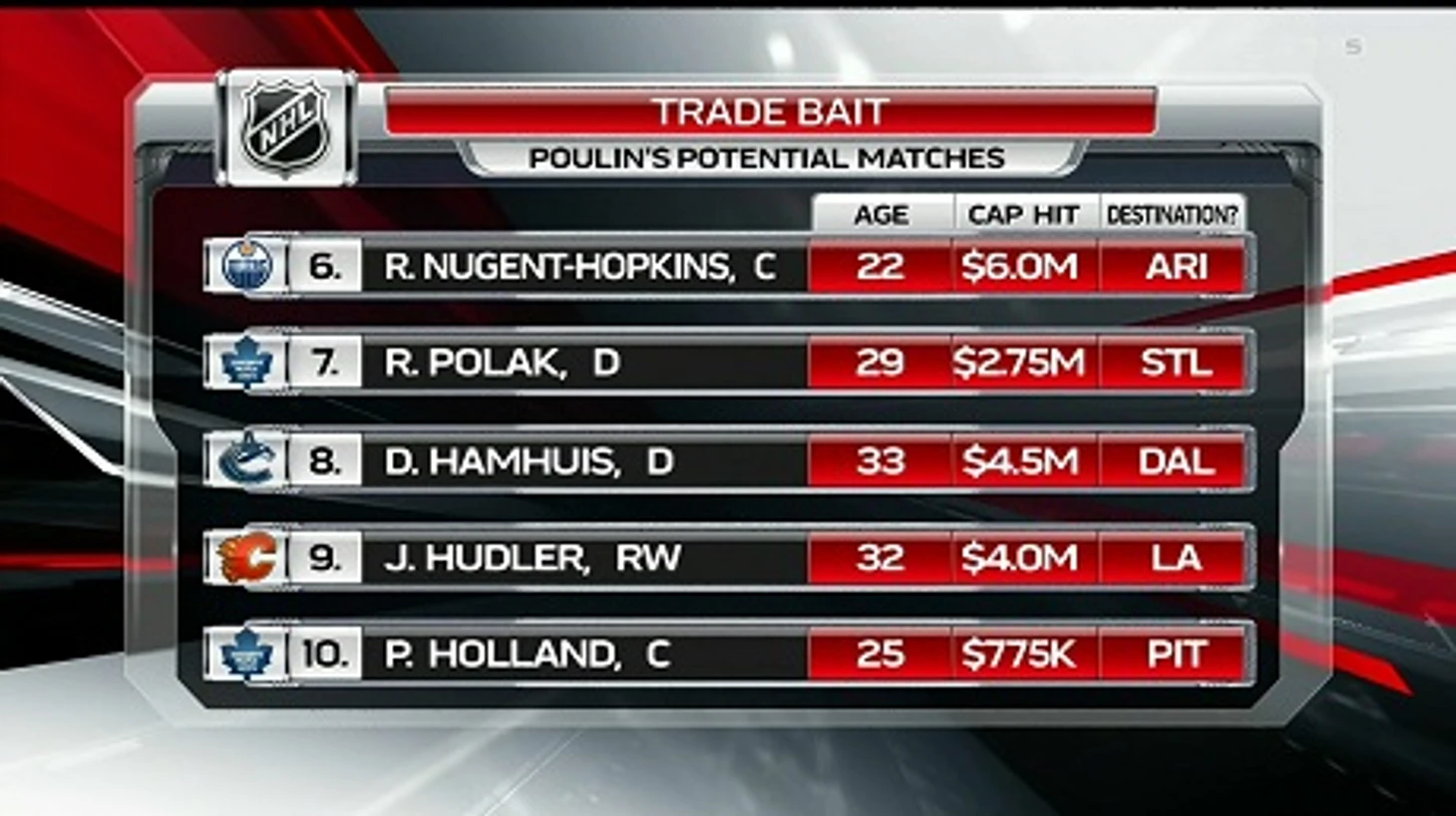 Питер Холланд может отправиться в «Аризону» или в «Питтсбург». И «Бостон» тоже им интересуется», – сказал канадец.