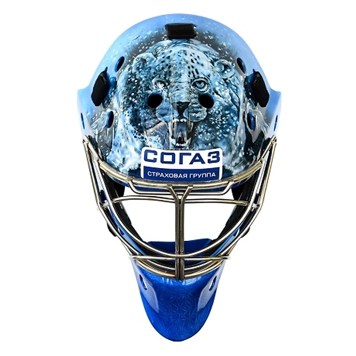 Шлем раскрашен в сине-голубые цвета казахстанского клуба.