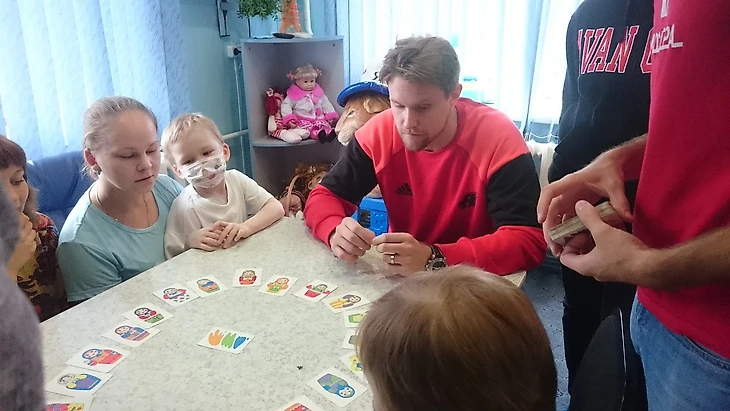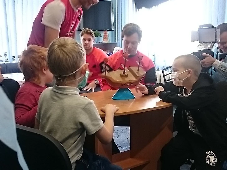 Доминик Фурх, Юнас Анелев и Эрик Густафссон познакомились с маленькими пациентами отделения гематологии, провели небольшую автограф- и фотосессию, а также поиграли с ними в разные игры.