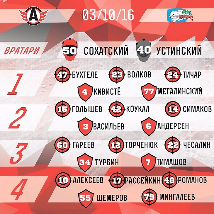 «Автомобилист» объявил состав на сегодняшний матч регулярного чемпионата КХЛ против «Ак Барса».
